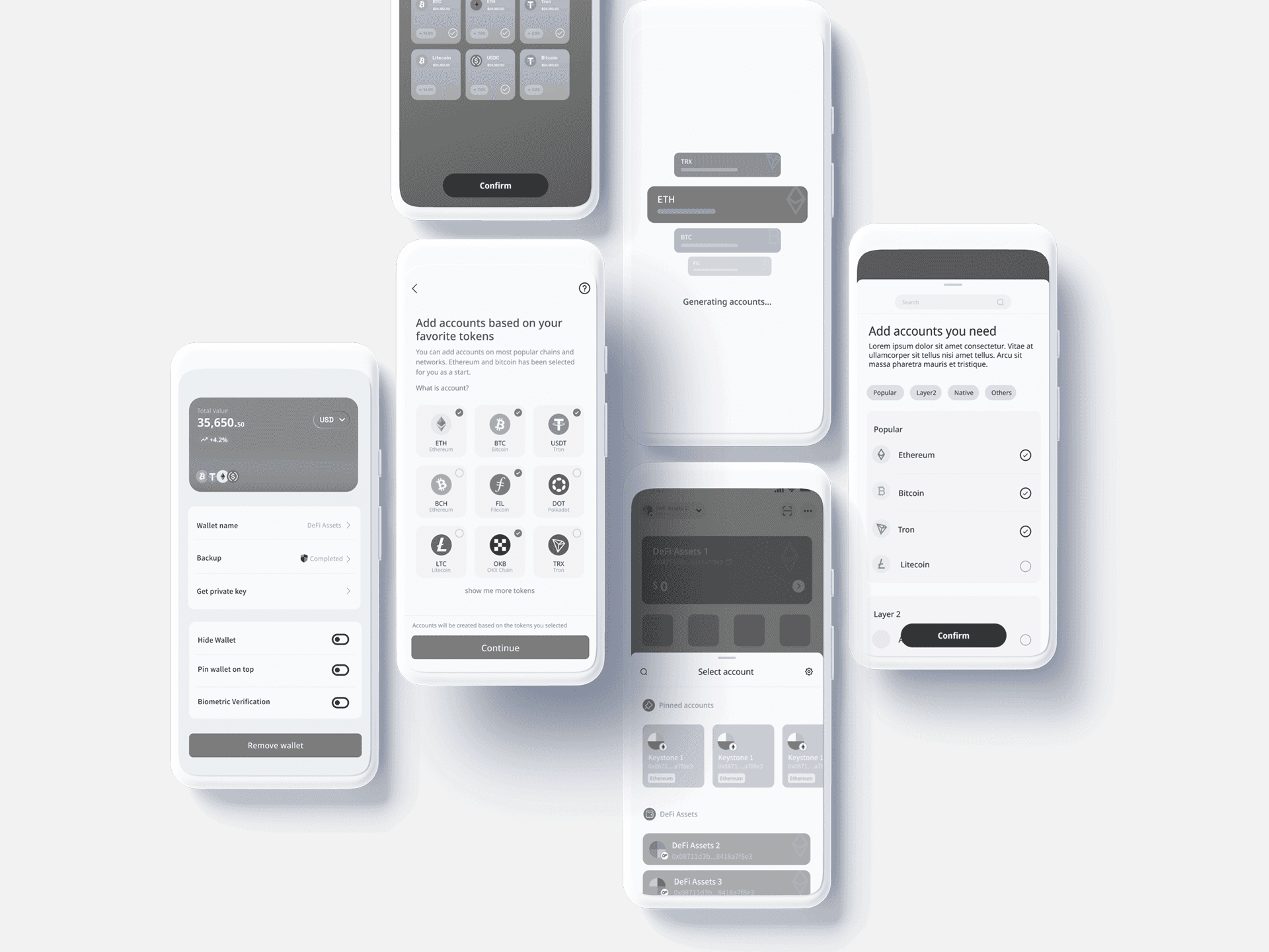 To serve our 'Web3 Explorer' and 'Crypto Native' personas, I designed an advanced 'batch creation' feature to solve a key pain point: the tedious and repetitive effort of adding multiple accounts one-by-one. This solution provides expert-level control—such as choosing specific Bitcoin address types or adding accounts via a derivation path—all within a single, streamlined flow.